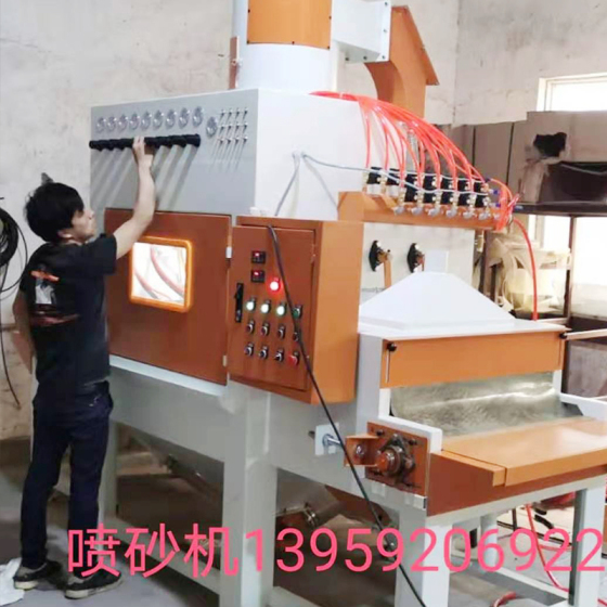 自动喷砂机的可取代手喷的单喷头,可以多喷头固定喷头角度与距离,稳定性高;自动喷砂可起很稳定的行走不会有交叉重叠的喷砂影子;手喷有视觉弱差,自动的可调整多方位角度稳定;自动喷砂可有效的品质管控;减少人工,效率高,喷砂后效果均匀!